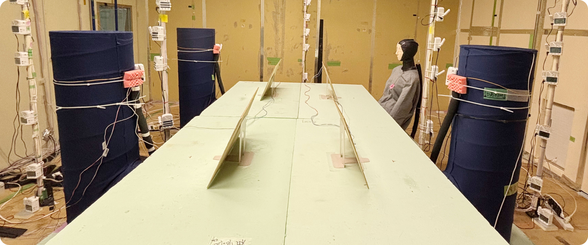 これらの施設では、高精度・最新の設備を駆使して、空気流動や空気質、温熱環境などに関する様々な物理環境測定や心理・生理評価を行っており、基礎研究から応用研究まで幅広く実施しています。