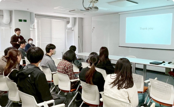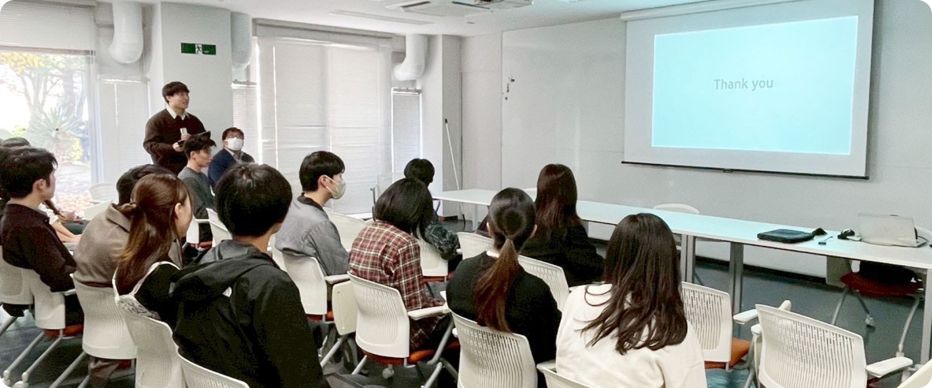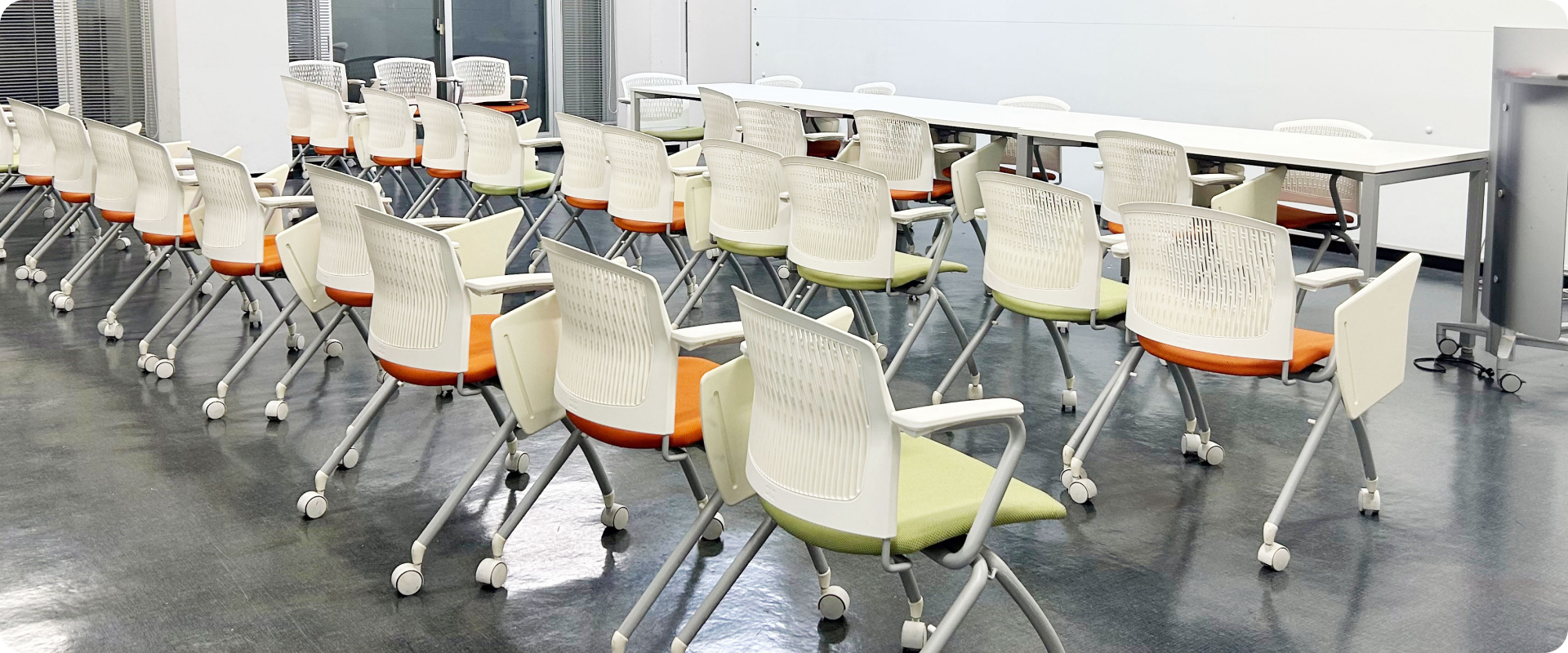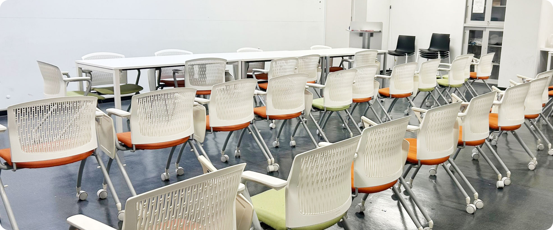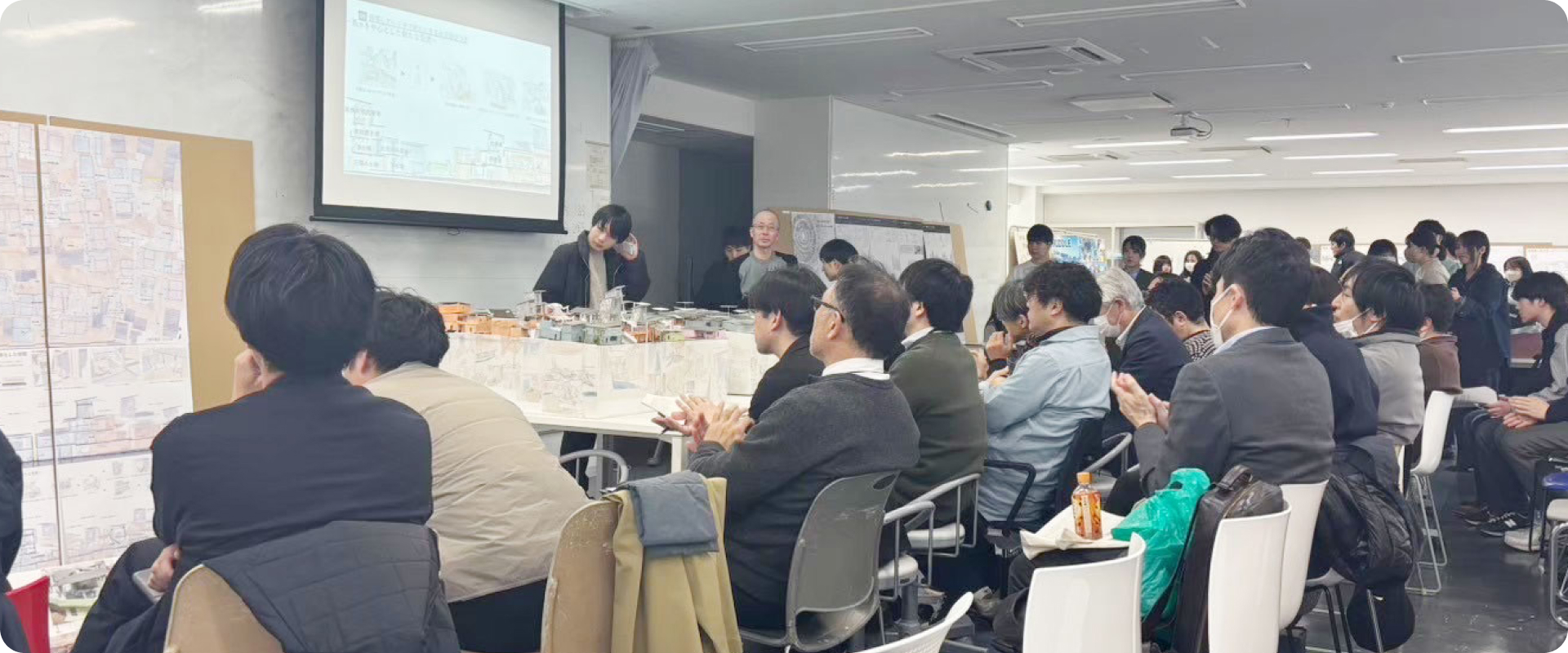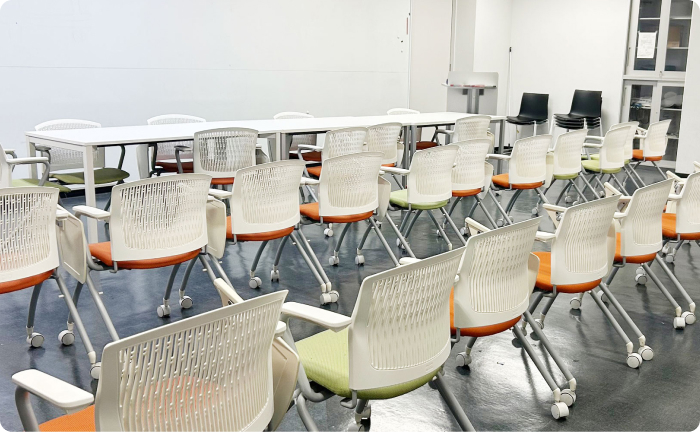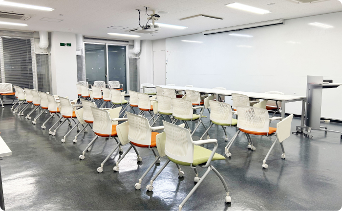 プレゼンルームは、S1棟2階にあります。プロジェクターの常設、壁面がホワイトボードなど、プレゼンテーションに適した設えがされている部屋です。 ゼミや設計課題の発表、建築家のレクチャーなど、プレゼンテーションや表彰式などに利用されています。