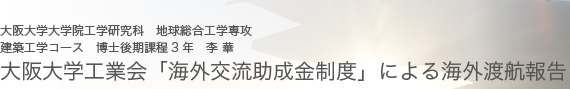 今回、私は大阪工業会から助成金を頂いて、自分の研究を世界中の研究者たちと一緒に議論を行い、最新の研究と情報も受け取ることができました。また、北京の建築と都市計画を体験すると同時に、一般市民の生活風景も楽しむことができました。本当にありがとうございました。私は良い研究成果ができるよう、さらに、自分もいつか後輩の研究者たちの研究に貢献できるよう、これからも頑張りたいと思います。