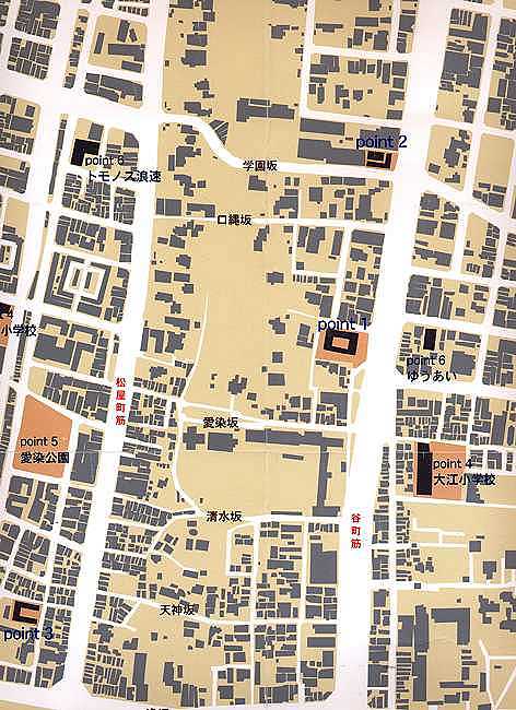 子育てに専心するあまり、狭い世界に閉じている母親を救済するための施設の提案であり、対象地である大阪市夕陽丘の地域環境の特徴をよく読んだ上での密度の高い計画がされている。地域に分散した6タイプの施設群(ポイント1〜6)が母親の生活環境を広げていくための役割を分担する。ポイント1〜3は心理治療、情報提供、居場所確保等の機能を担い、いずれも各プログラムに応じた精寧な計画がされており、建物内部の視線や行為のつながりを意識したすきまや断面構成もよくできている。外部空間に対してやや閉鎖的な点が残念である。各施設の役割の特性が形態や空間構成に顕著に現れてもよい。ポイント4〜6は既存の施設や公園であり、講習会の開催や交流を分担する。公園を特に「実世界の井戸端」と位置づけているが、他の施設や場所にも同様の役割が望まれる。また、 母親の社会性の回復は、施設よりも地域全体で支えるものと考えられ、より社会に開いた提案が望まれた。