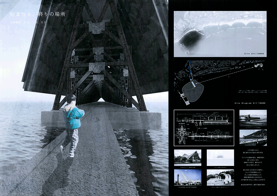 後から全作品を見直してみて、もう一点、付け加えるべき項目に気づいた。対象の冷静な分析である。敷地と周辺地域における課題の分析、町や空間の形成原理の理解、空間や場所のポテンシャルの解読などができている作品はコンセプトや設計の内容に厚みがあるし、大きな矛盾も生じていないことがわかった。卒業論文の成果を活用している作品は特に強みがある。今後は、構造系、環境系の学生にも、それぞれの専門分野から、既存の構造体や周辺地域の特性を分析し、設計に生かすような取り組みに期待したい。