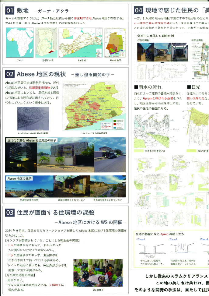 本作品は、アフリカ・ガーナの非正規市街地であるAbese地区に対する再編計画の提案である。