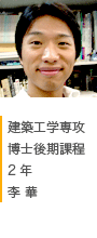 建築工学専攻 博士後期課程 2年 李 華 「近頃の等身大の阪大留学生」