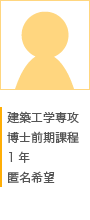 二年次の分属以降、建築学科生として知識を深め、建築工学の中でも特に関心を持っていた構造システム学領域の研究室に入ることができました。研究・実験はこれから本格的にスタートする ( 楽しみでたまらない ) のですが、今まで学部時代に学んだことを実際に実験や解析に用いて、より専門的・実践的に取り組んでいくことに、嘱望すると同時に正直少し不安な気持ちもありますが、先生方や先輩方からできるだけ多くを学び、研究成果を早く出せるように、ハングリー精神で研究に没頭できたらと考えています。