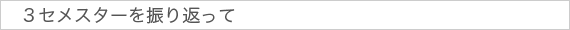 今日は八月十三日。「待ちに待った夏休み」が始まって一週間たち、私の体内時計はすっかり夏休みモードになっています。そろそろ原稿を書かないとと思い、パソコンに向かったのですが、思うように筆は進みません。でも、そんなこともしていられないので、まず3セメスターを振り返ってみようと思います。