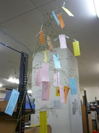 "もうすぐ七夕[:星:]ということで 院生室にも笹(竹?)を飾ろうと,2講座の松本くんがとってきてくれました[:音符:] まだ短冊しかついてませんが, 他にもいろんな飾りを作ってぶらさげたいなあと思っています[:チューリップ:] みんなのお願いごと,叶うといいですね[:四葉:] おき[:にくきゅう:]"