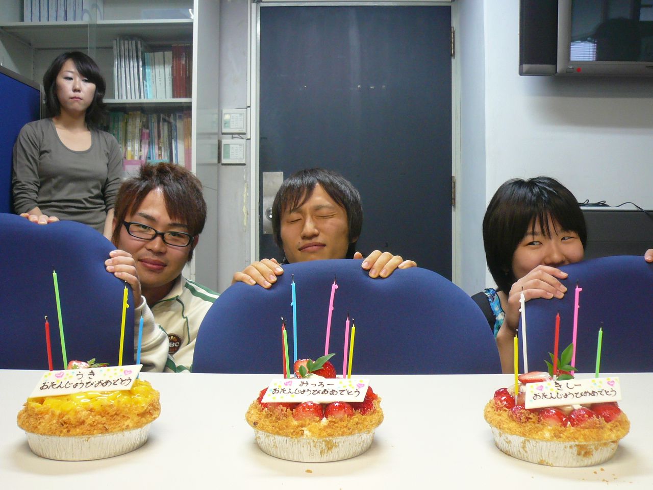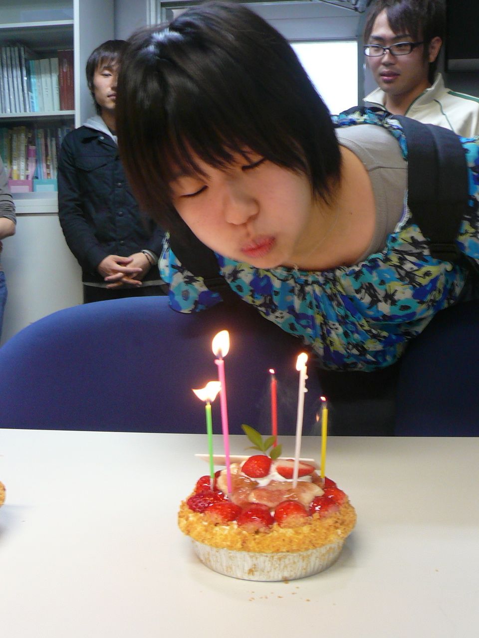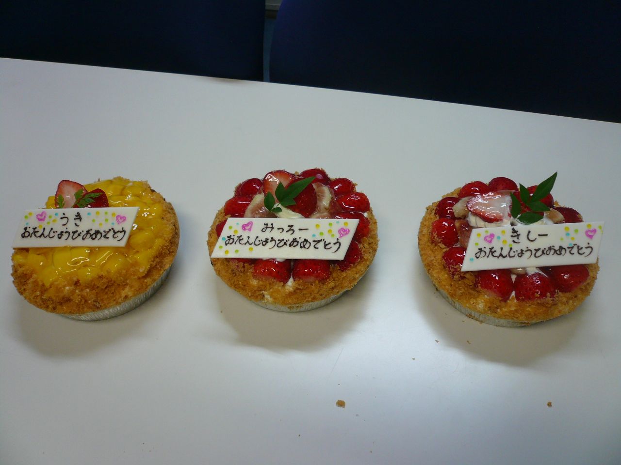 "今日,全体ゼミのあと10月頭の誕生日の人のお祝いをしました。 今日お祝いをしたのは M1岸本さん,光畑君,B4大築くん の3人です。おめでとう[:星:] 急いで買ってきたケーキは名前がちょっと違っている気がしますが… まぁそれもネタということで許してください苦笑。 M1が3限授業だったのでバタバタして抱負とか聞けなかったけど[:ダッシュ:] B4は卒論・卒計,M1は就活とこれからまた忙しくなりますね。 大変ですがみんな頑張っていきましょう[:グー:] おき[:にくきゅう:]"