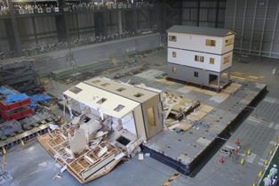 そこで行われた,木造3階建て軸組構法住宅の震動台実験を見学するためです。