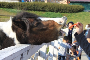 高原で,牛や馬と戯れた後は,湯原温泉へ。