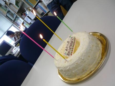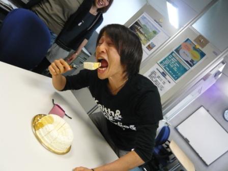 "今日は4回生の藤井くんの誕生日。 ・・・と,言うことで。 ゼミ後,ケーキを買いに走り[:バイク:](朝はまだ開店前でした。。。) みんなで誕生日会です[:花:] 藤井くんのこの笑顔☆ 喜んでくれたみたいでよかった[:音符:] 今年は院試やら卒論やらで忙しいとは思いますが, 楽しい22歳になることを願ってます[:太陽:] ちなみに先輩はこんな感じでちょけてました。 きし[:りんご:]"