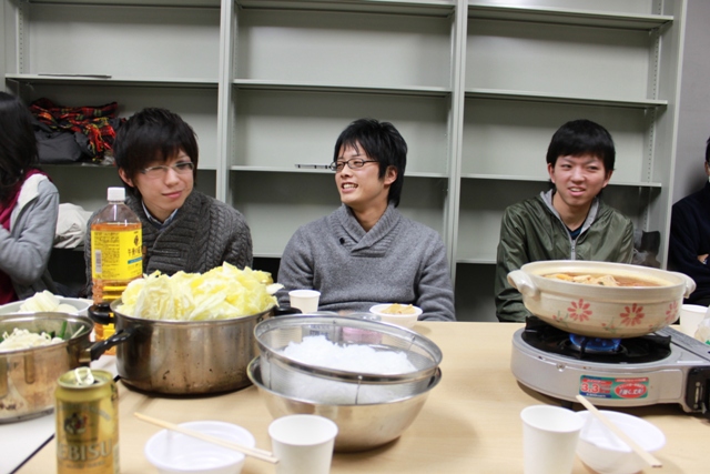 その後,みんなで鍋を囲み,おしゃべりタイム[:ビール:]