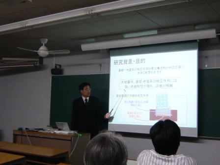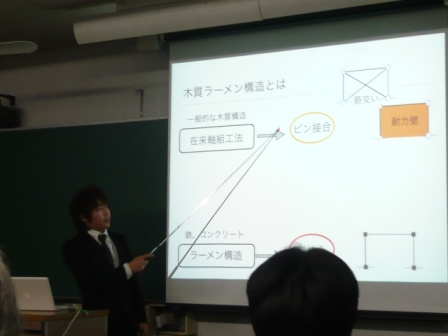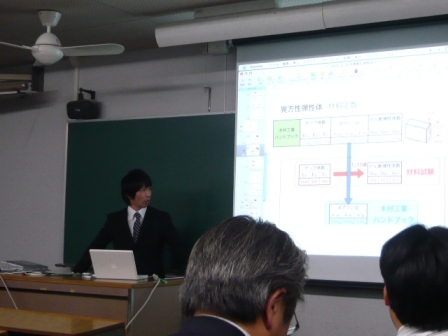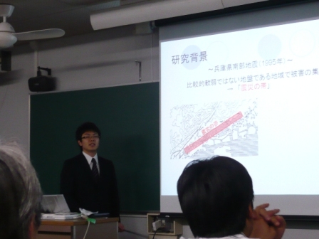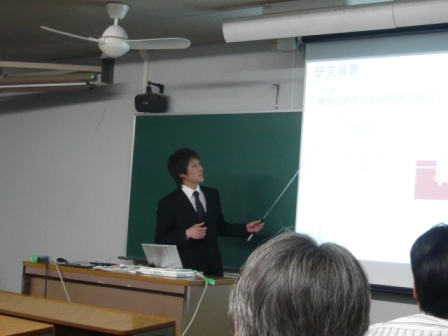 "先日,26日(金)に卒論発表会がありました。 発表が7分,質疑が3分です。 4回生は全員,一人ずつ発表しました。 みんな,前回の発表練習の時よりも格段に良くなっていました! ぎりぎりまでスライドを見直し,発表内容を練り直した甲斐がありましたね。 いや,良かったです。 質問にもきちんと答えられていました。 素晴らしい! とりあえず,本当にお疲れ様☆ 次は,建築学会近畿支部だね〜。 (あー,私たちもそろそろ梗概を書かないと・・・・) きし[:りんご:]"