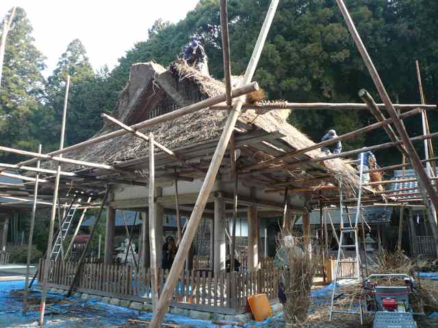 古い茅を全て取り除いてから、新しい茅をのせるそうです。