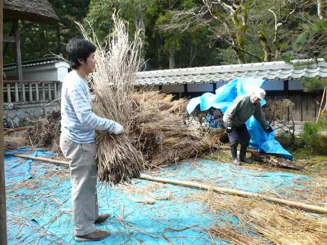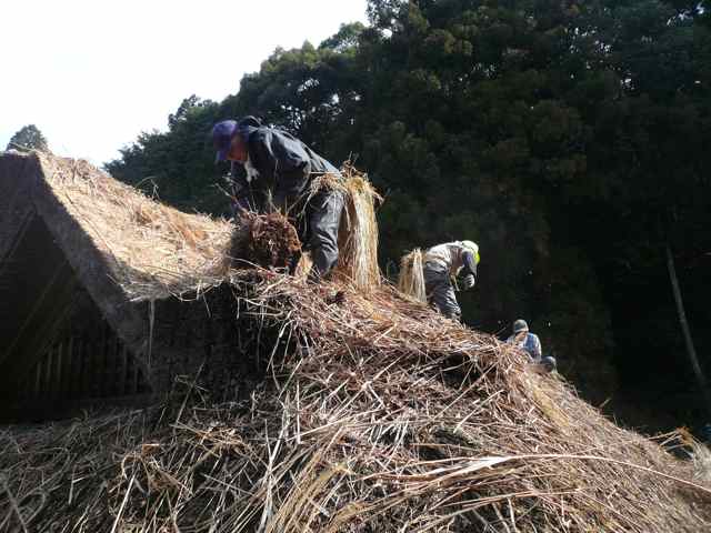 古い茅を取り除く作業は今日から。