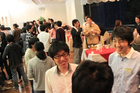 "毎年恒例、建築専攻による春の懇親会が行われました。 今年は、参加人数が例年より多く、110人ほどいるそうで、全体的ににぎやかでした。 「建築だけでこんなに人数がいるのか・・・・・」と改めて感じました。 M1による自己紹介および発表会では、各領域の個性が出てて、面白かったです。 もちろん、1領域のM1もがんばってました。(一番頑張ったのは柏先生だと思いますが・・・・・) 発表会は面白かったし、料理はおいしかったし、残り物はもらったし、とても良い一日でした。 お酒の準備や司会等など、柏先生は本当にお疲れ様でした。 ひで[:うし:] "