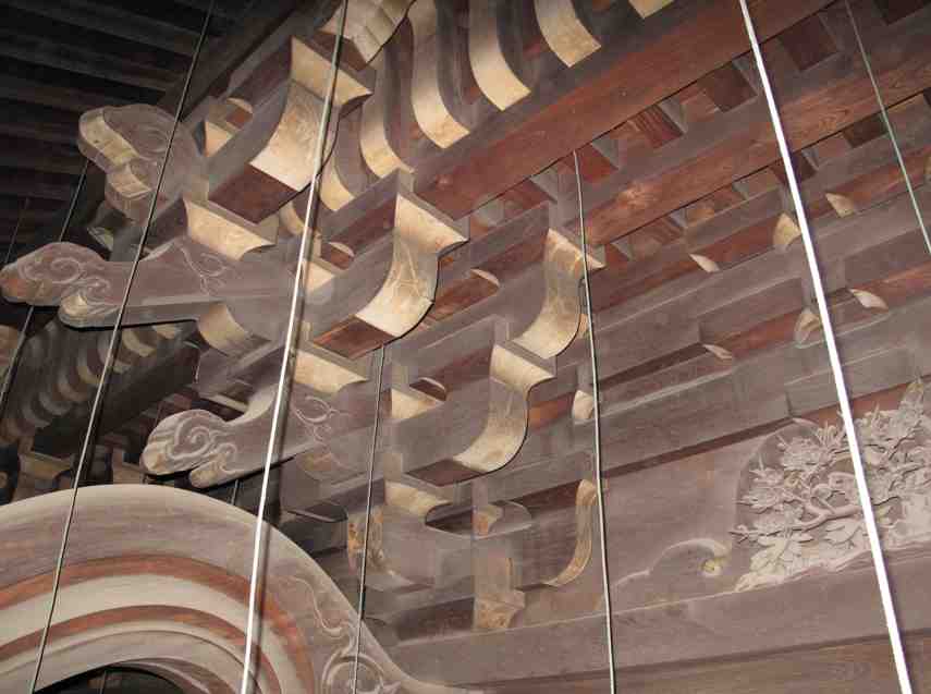 尾垂木(おだるき)、肘木(ひじき)、桁(けた)などが