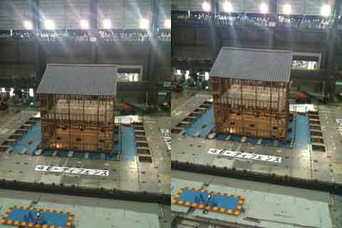 「既存木造校舎の震動台実験」の一般公開が行われました。