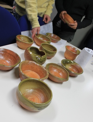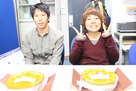 "11月24日 あゆみさんとくまさんのお誕生日会をしました![:ケーキ:] あゆみさんは24歳[:星:] くまさんは23歳[:星:] おめでとうございます\^0^/ ちなみにこの日、 ゼミ旅行でつくった信楽焼きが届きました![:花:] みんな自分の作ったものがどれか 分からなくなっていましたが・・・ きれいに全部焼き上がっていてうれしかったです^^ 三木[:四葉:]"