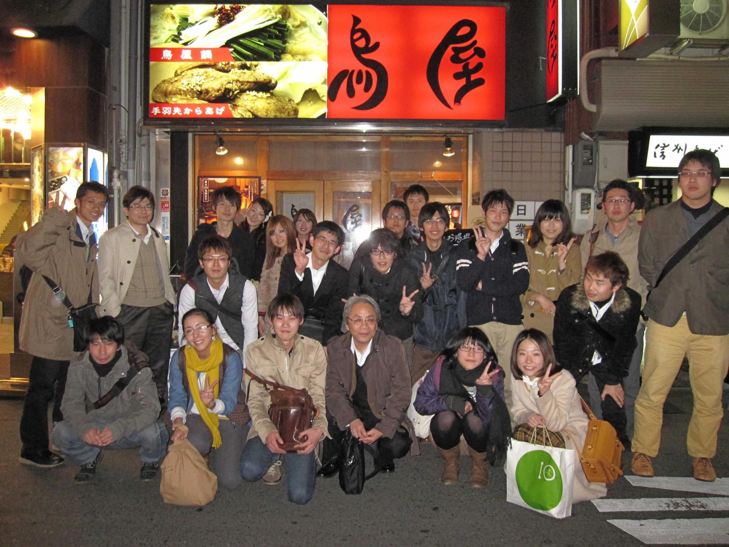 "11月28日、中之島センターで合同研究会がありました。 宮本研から B4の6名 向井研から 奈良女子大から3名 神戸大から1人 計10名による研究発表でした。 研究室のゼミ以外での発表は初めで[:初心者:] 私はかなーり緊張しましたが 皆、ゼミでの練習よりはきはきプレゼンできていたと感じました。 そして・・・ 北新地で、合同飲み会[:ビール:] 本日一番気合の入っていた中野氏[:星:] 体温まる鶏鍋と 普段、研究室にない奈良女の華やかさに 癒された飲み会でした[:にかっ:] おつかれさまでした[:ひよこ:] B4 よこみー "
