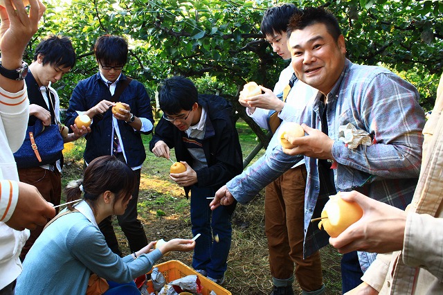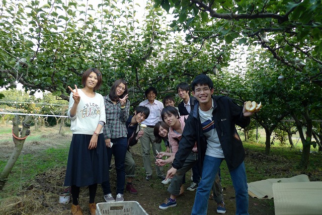 自然風景の後はバスで移動し、「大山観光農園」での梨狩り食べ放題