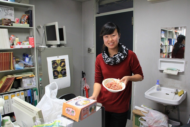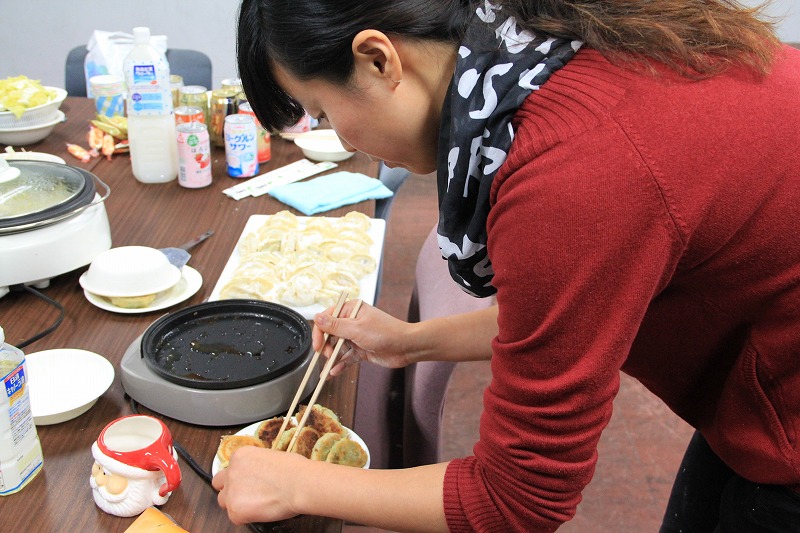 今年の鍋のメニューの目玉は中国からの留学生、ケイさんのお手製ギョーザ[:love:]