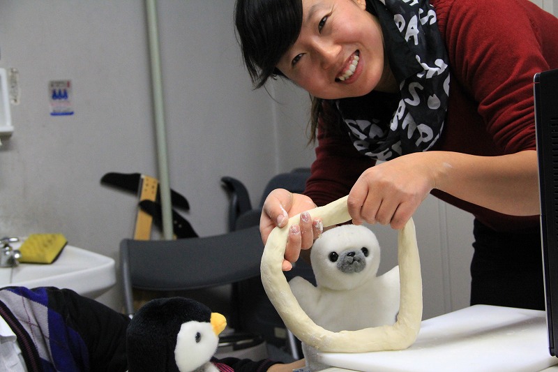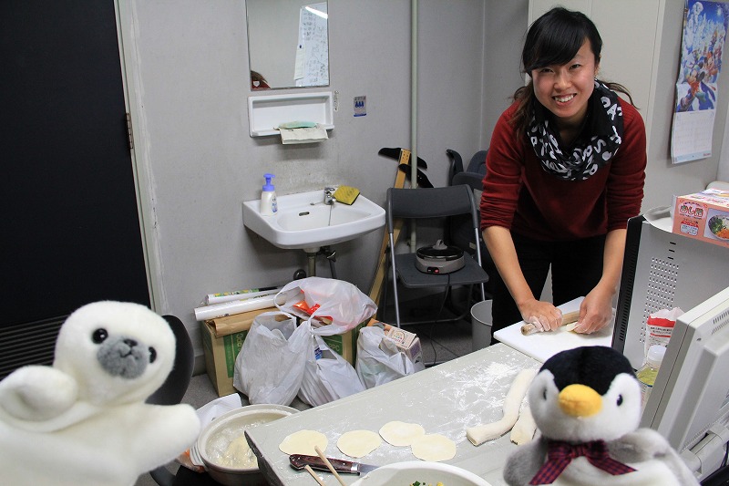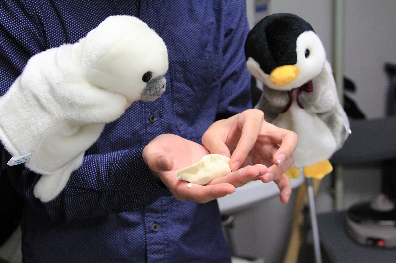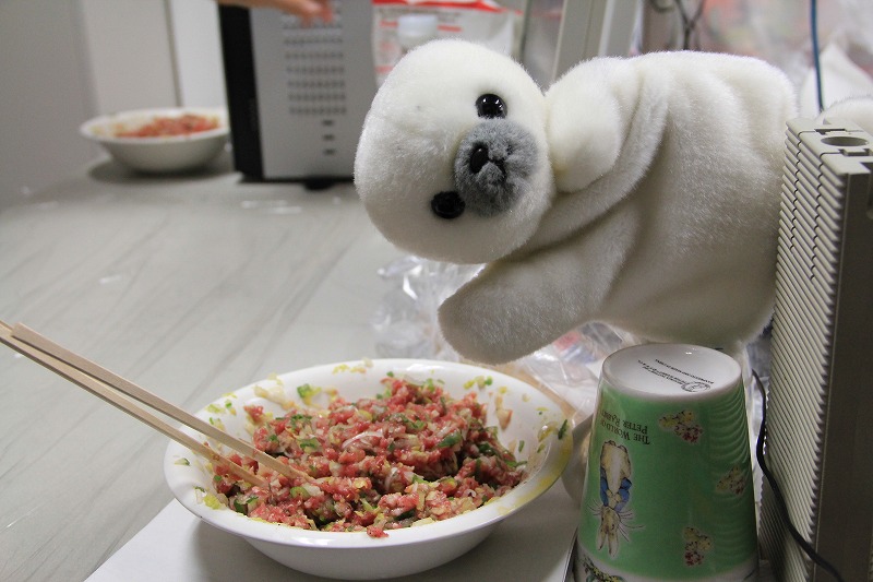 アザラシさんとペンギンさんもギョーザの包み方を教わります[:パー:]