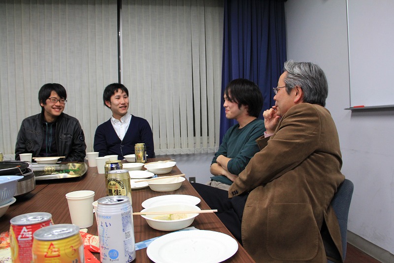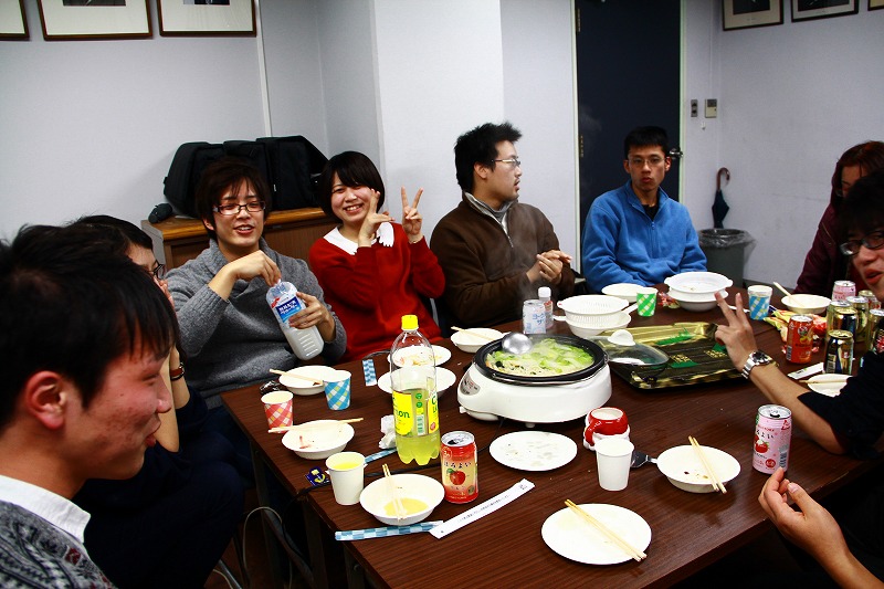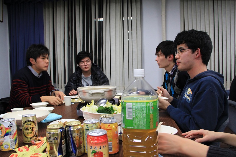 オープンラボとして研究室のメンバーと三回生が同じ鍋を囲み、さまざまな話をしました[:お茶:]