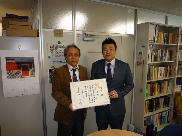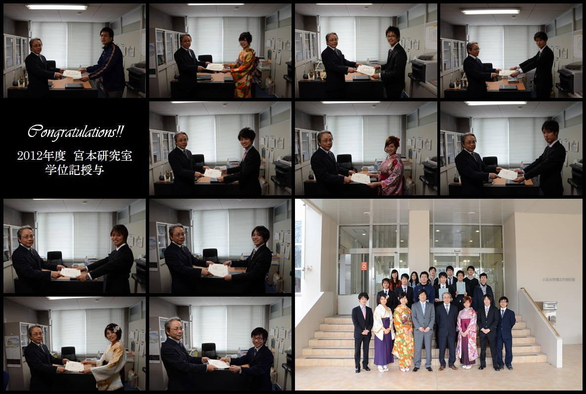 "3月25日、研究室にて学位記の授与が行われました。 晴れ姿の卒業生・修了生(M2:4名、B4:7名)が宮本教授より学位記を受けました。 皆さん、清々しい笑顔です。 そして、社会人ドクターの島村さんも、今年でご卒業。 お忙しい中、研究室によく来てくださって、一同、とてもお世話になりました。 ご卒業おめでとうございます。 中野[:りんご:]"