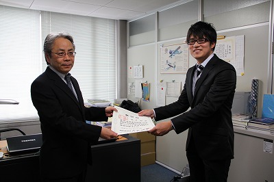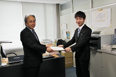 宮本先生から学位記を受け取る学年主席候補筆頭と言われ続けた弾健太郎くん