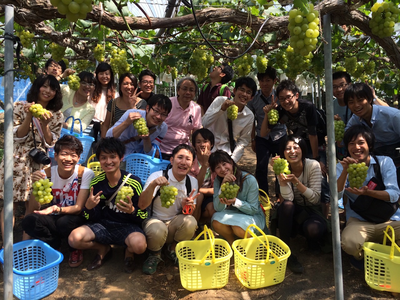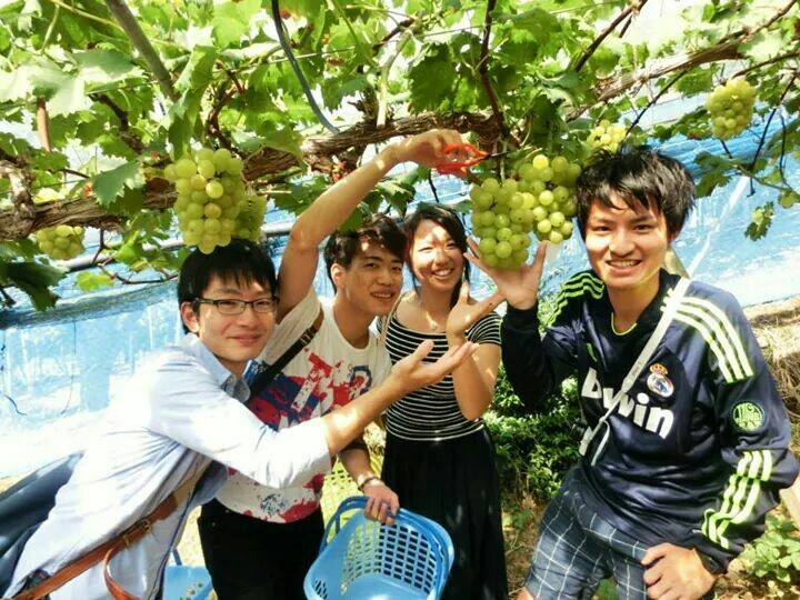 それぞれ選んだぶどうを持って、集合写真をパシャリ!