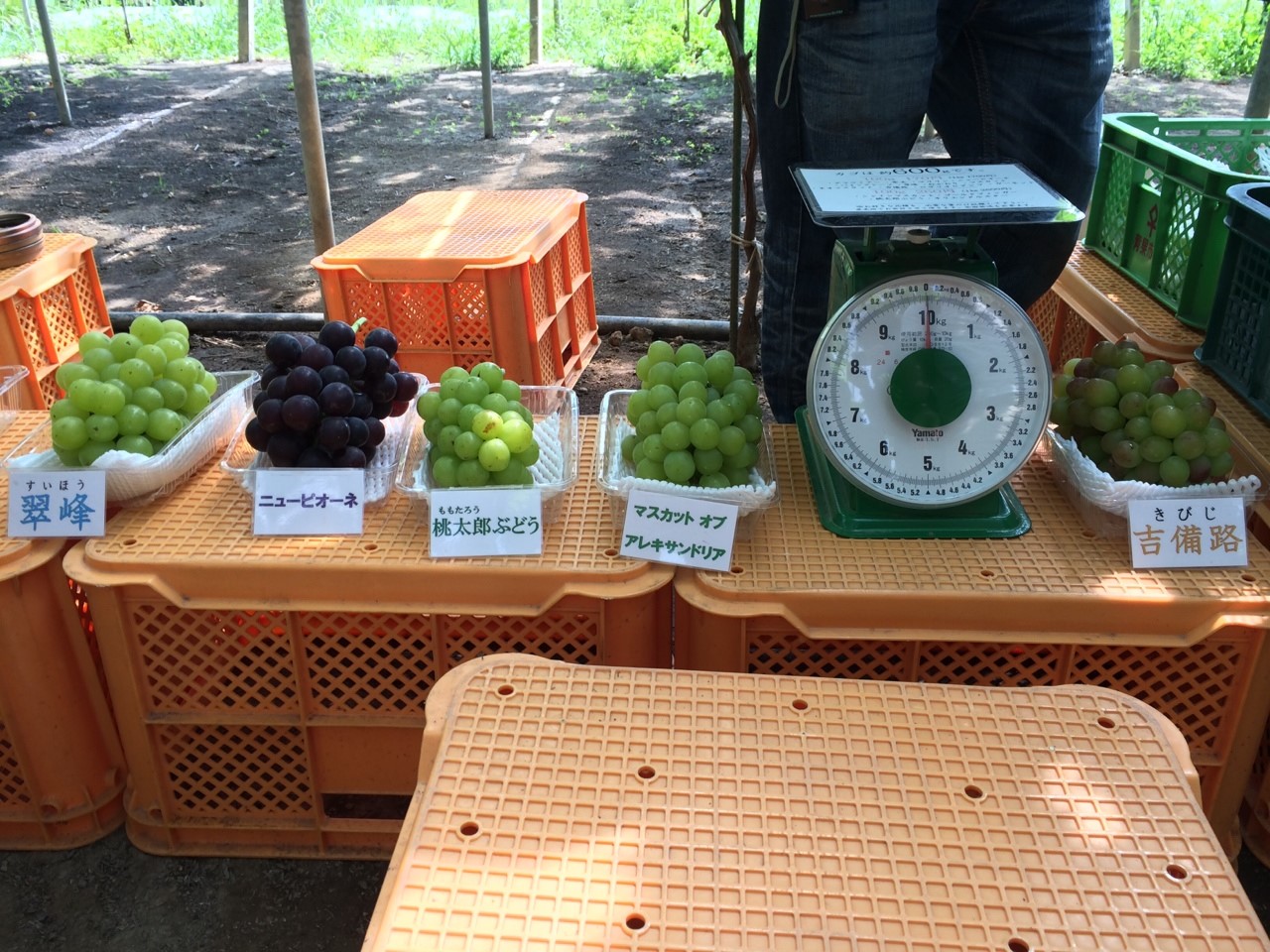 この中からお気に入りの品種を選んで、食べごろの房を探して採っていきました。
