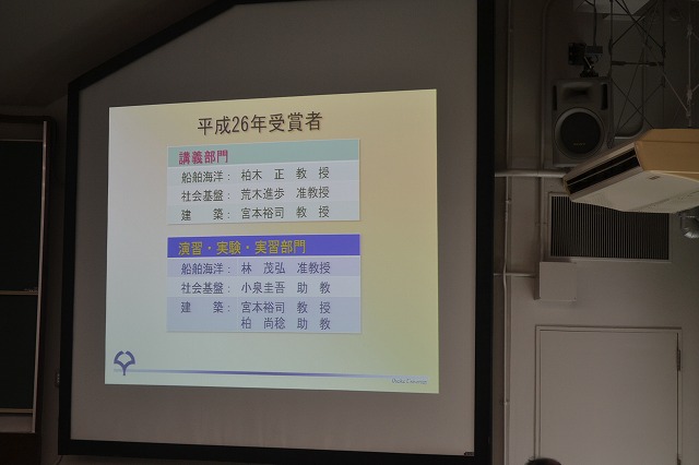建築では講義部門に宮本先生、実験部門に宮本先生、柏先生が選ばれました。