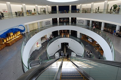 エスカレーターで下に降りてから、展示を見ながら上がっていくスタイルみたいです。