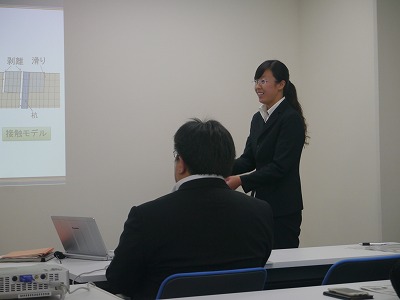 "本日、宮本研D3のケイさんが学位論文の公聴会で発表されました。 終始堂々と発表されていて、さすがだな〜と思いました。 ケイさんにとって日本語は外国語ですが、とても流暢で分かりやすかったです! 僕に英語で発表しろと言われてもとてもできませんから、その凄さがよくわかります。 僕たちB4も、もうすぐ卒論の発表会ですが、今回の公聴会はたいへん勉強になりました。 同じ宮本研の一員として、恥ずかしくないような発表ができるようにがんばらねば… 本日はケイさん本当にお疲れさまでした! B4 田中でした(-c・*)// "