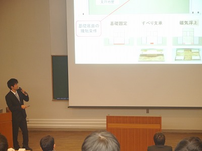 題目は「新複合地盤材を用いた建物の地震応答低減に関する模型実験と解析的研究」