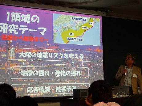 第一部は各領域の研究内容の発表を各領域の教授にしていただいたのですが、トップバッターは宮本先生!