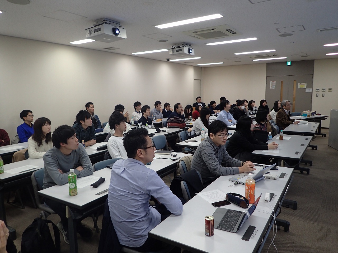 "12月5日、中之島センターで 神戸大・奈良女子大・大阪大の合同研究発表会がありました[:にこっ:] 神戸大学から4名 奈良女子大学から4名 宮本研から B4の4名 の計12名による研究発表でした[:太陽:] 宮本教授のご挨拶で発表会は始まりました。 宮嵜弘昂"