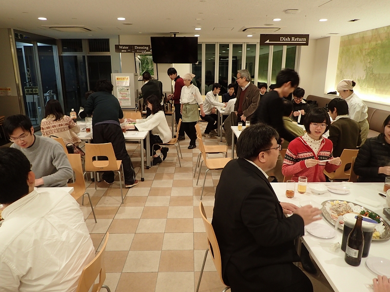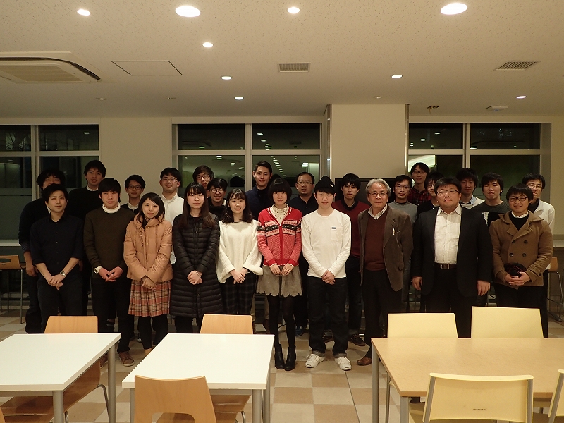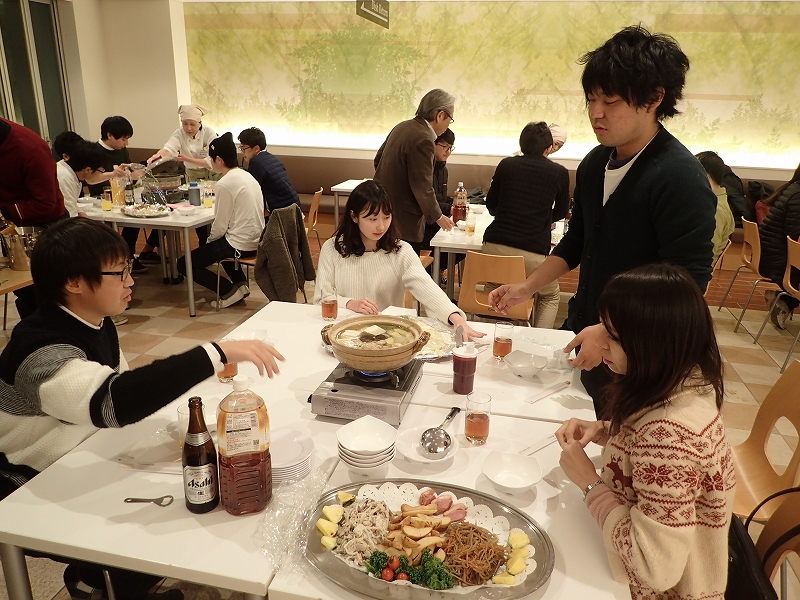 "1月25日にB3を交えて新年会を行いました。 今年は6人のB3が1講座に来たいということで参加しました。 下の写真は新年会の様子です。 料理は鍋で鶏鍋と豚鍋の2種類がありました。 でも、普段は野菜をあんまり食べていないんだろうということで 野菜をいっぱい食べさせられました(笑) 最後は皆での集合写真を撮りました。 やっぱり川辺先生は大きいですね(笑) すごい楽しいひと時でした。来年1講座に人がいっぱい来てくれるといいな。 B4 古田 空翔 "