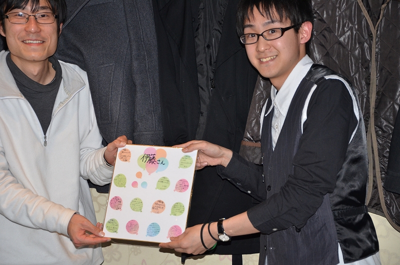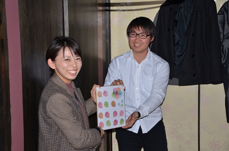 寄せ書きとプレゼントを渡しました