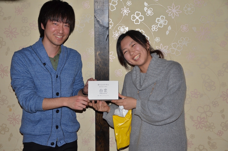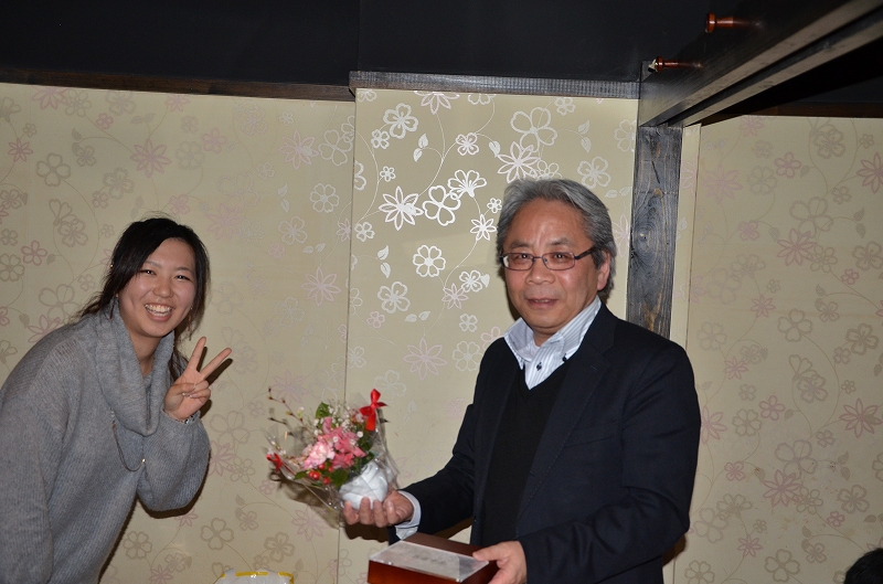 宮本先生と川辺先生にプレセントと花を送りました