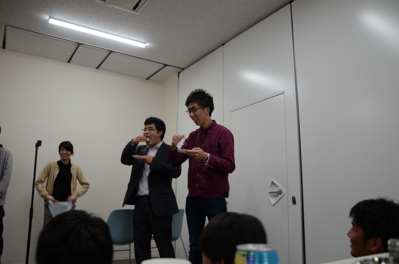 先輩方の掛け声で、急遽中野先生と西野に食べてもらうことに。
