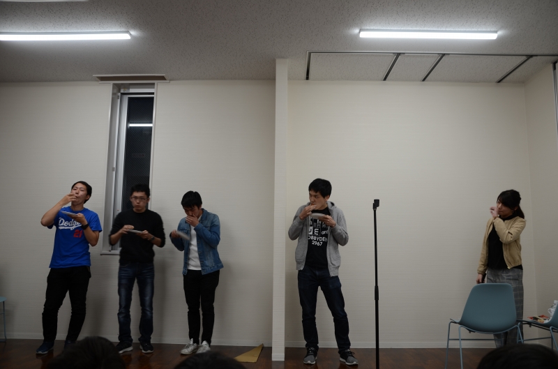 それから毎年恒例の新入生紹介と出し物を各講座で行います。
