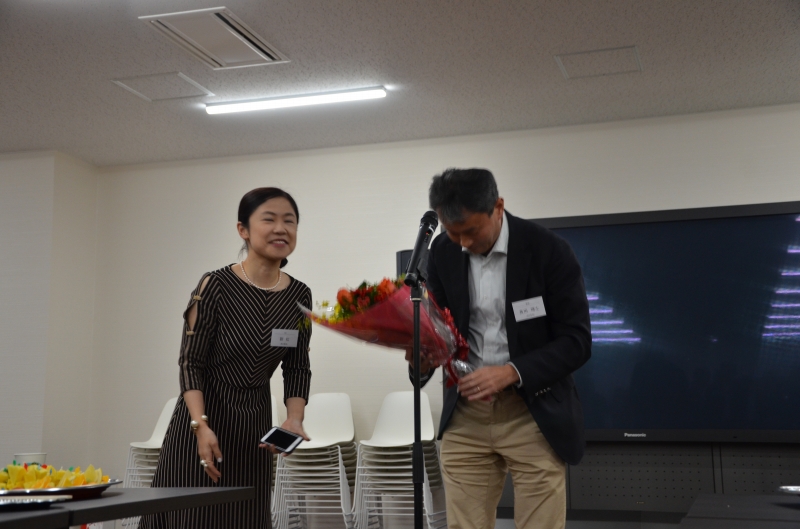 M2のりょうさん、宮崎さん、シュウさんから先生方に感謝の意を込めて花束を贈呈しました。