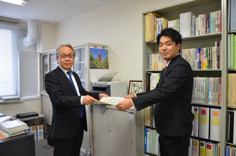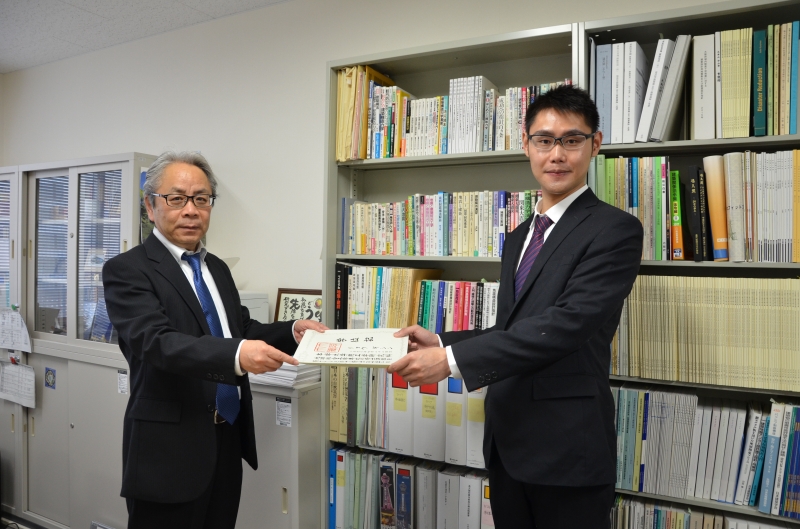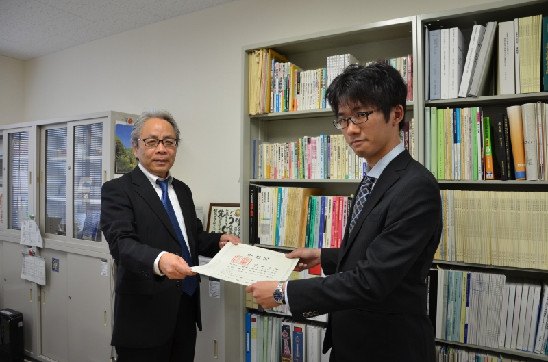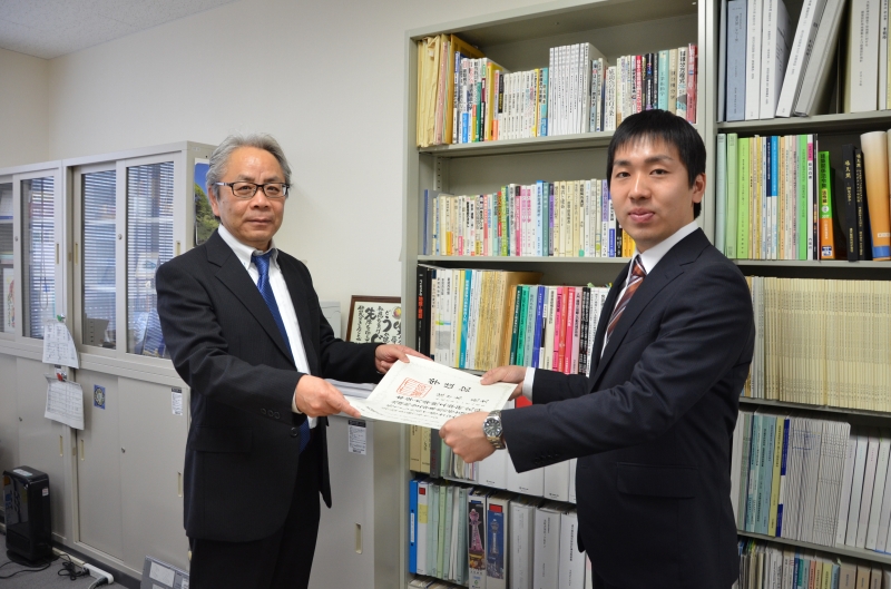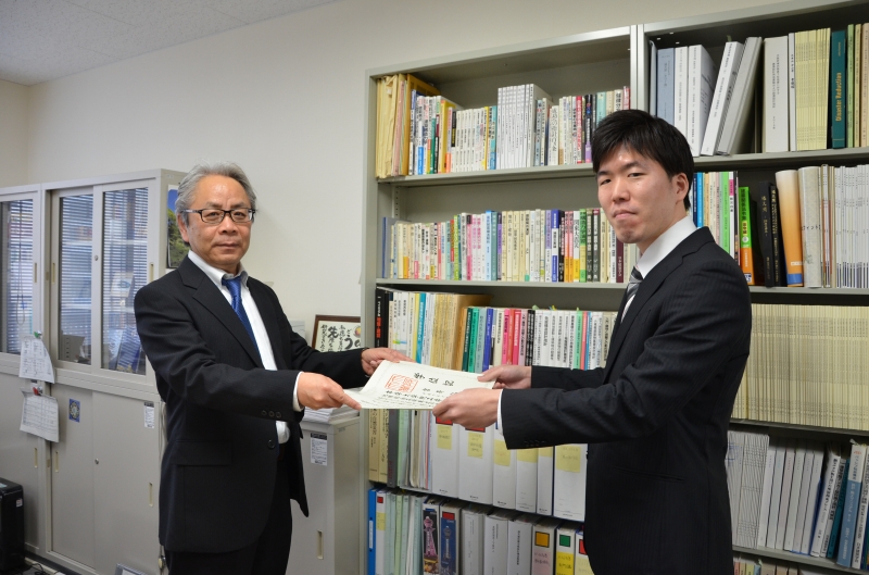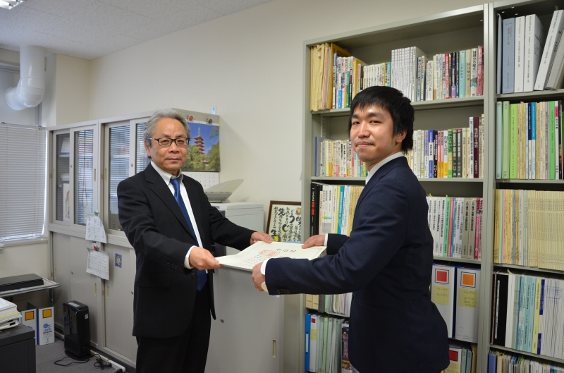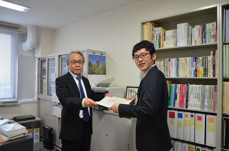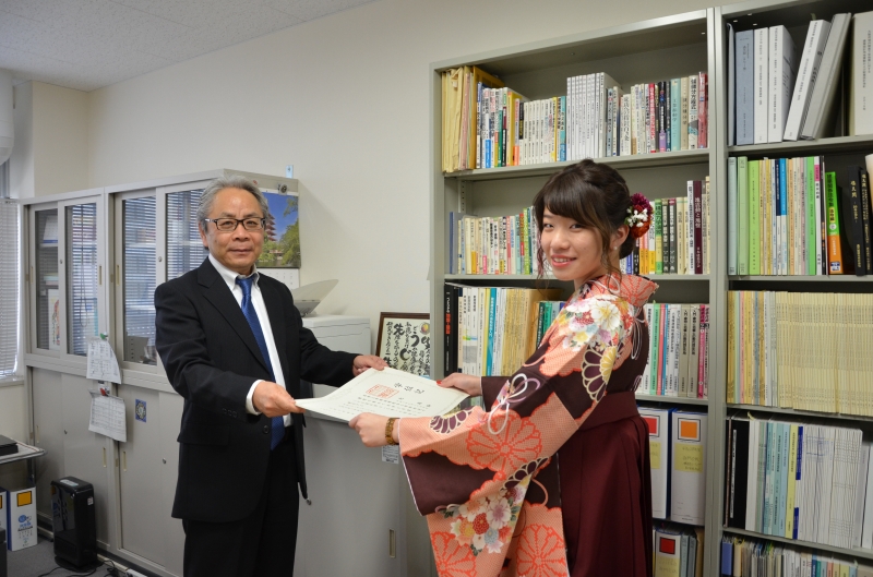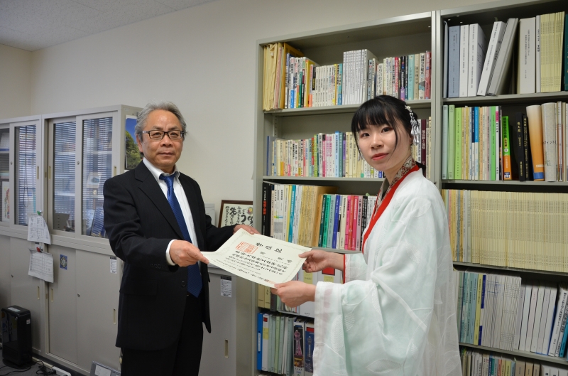 M2生(内海さん、佐々木さん、宮嵜さん、金さん、周さん、寥さん)の証書授与の様子です。