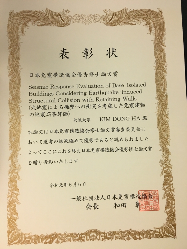 「大阪大学工業会」が優秀な修士研究を表彰するもので、