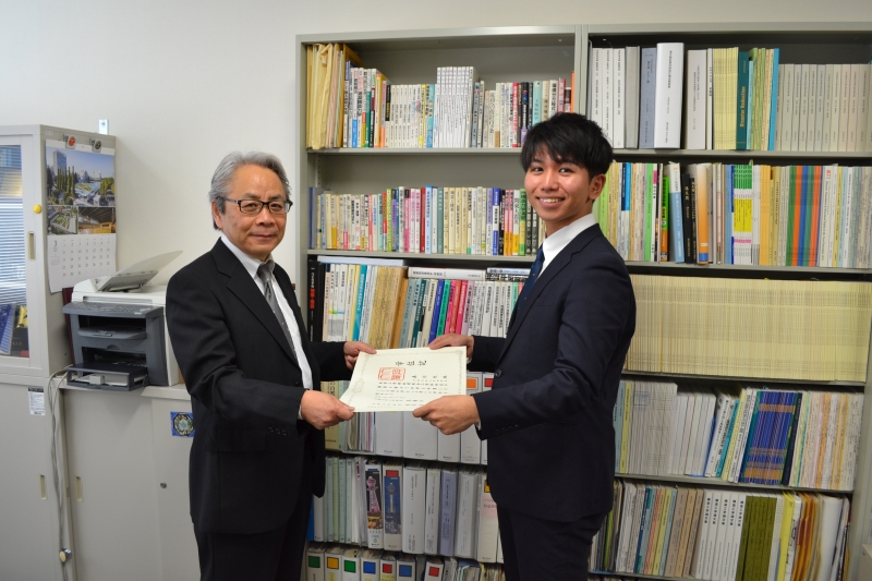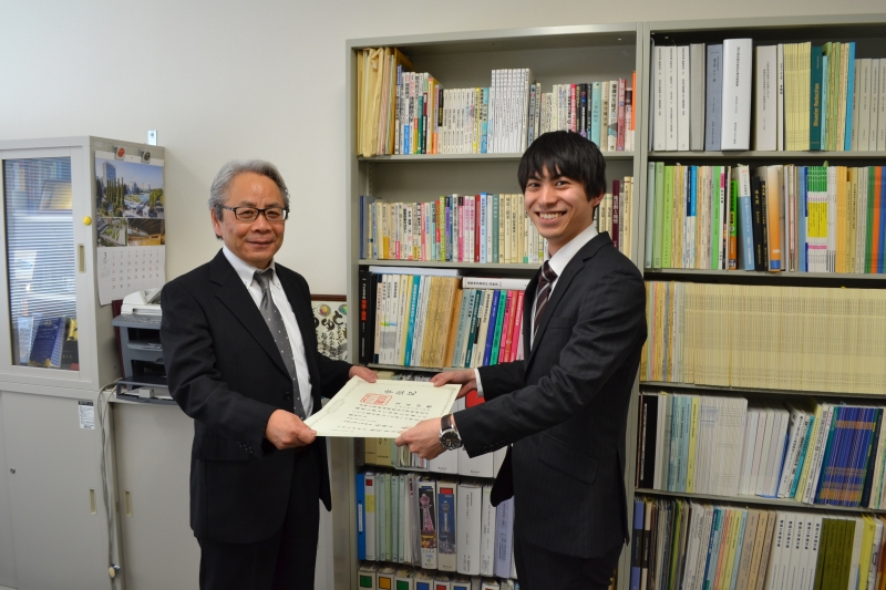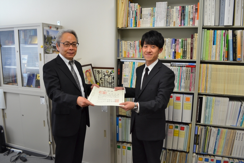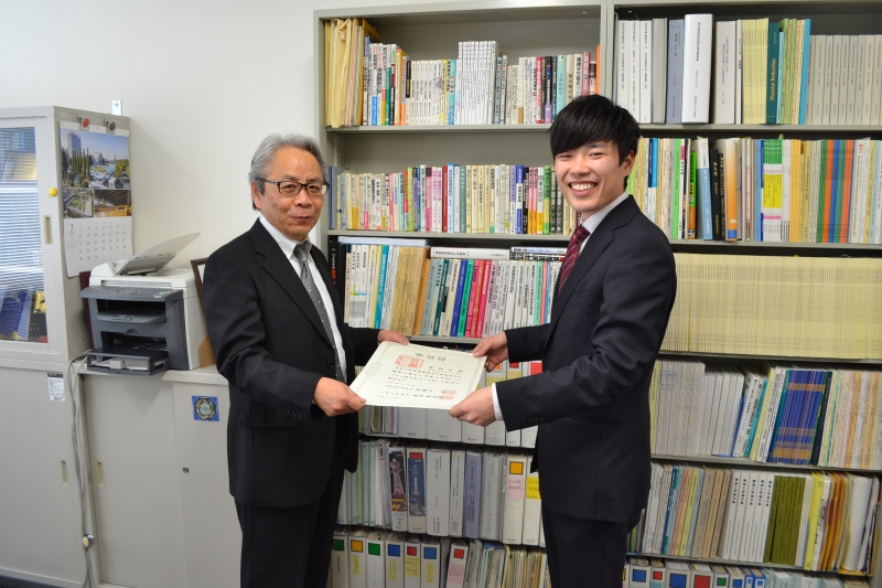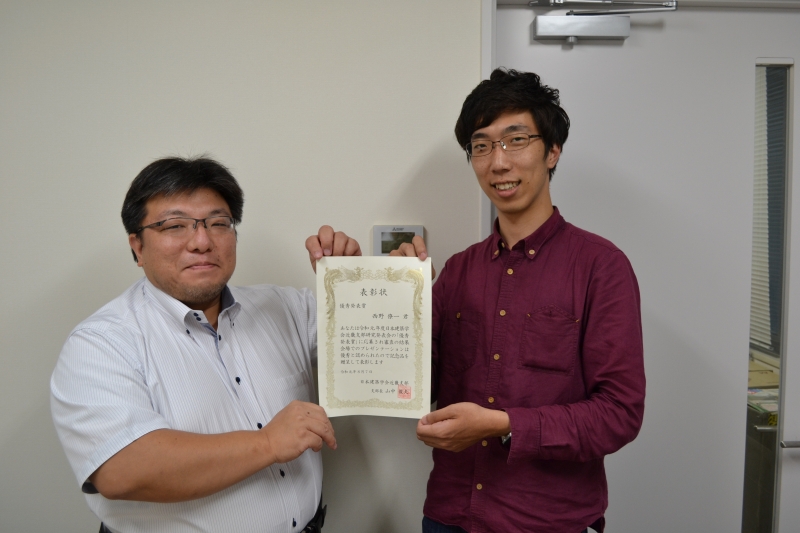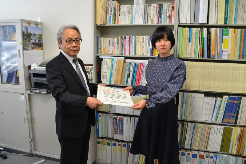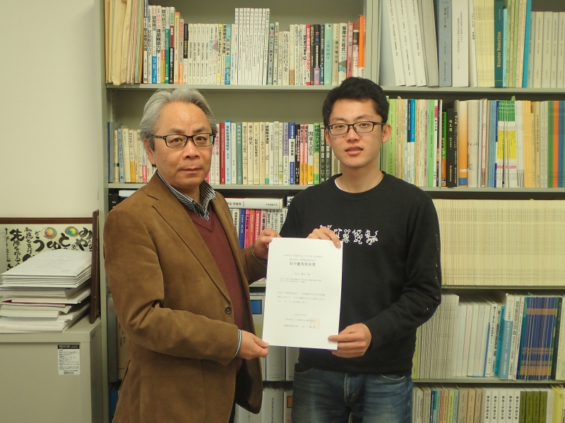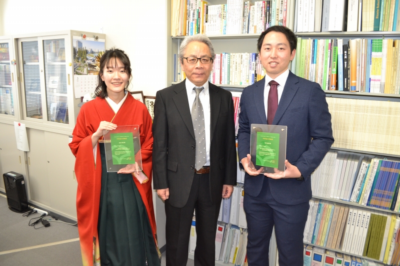 住友さんと寺垣くんには卒業論文奨励賞の盾が贈呈されました。