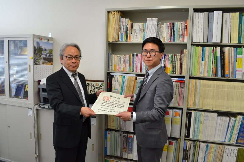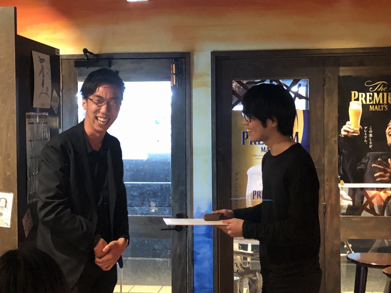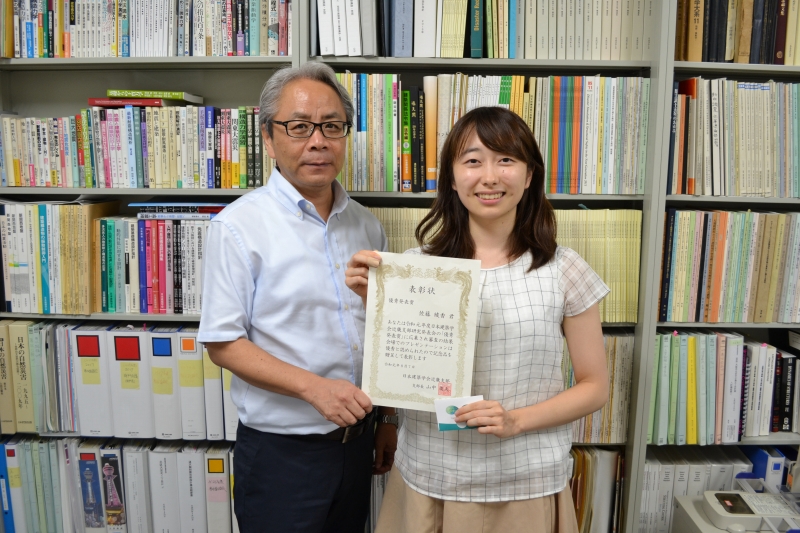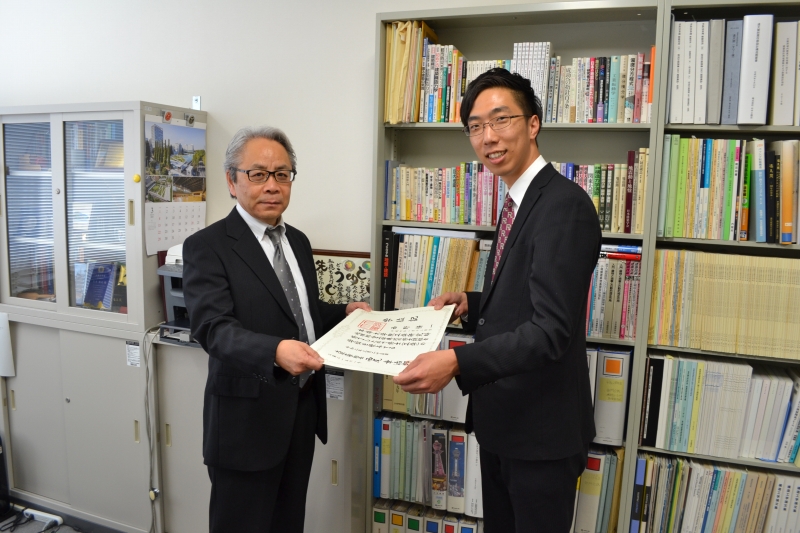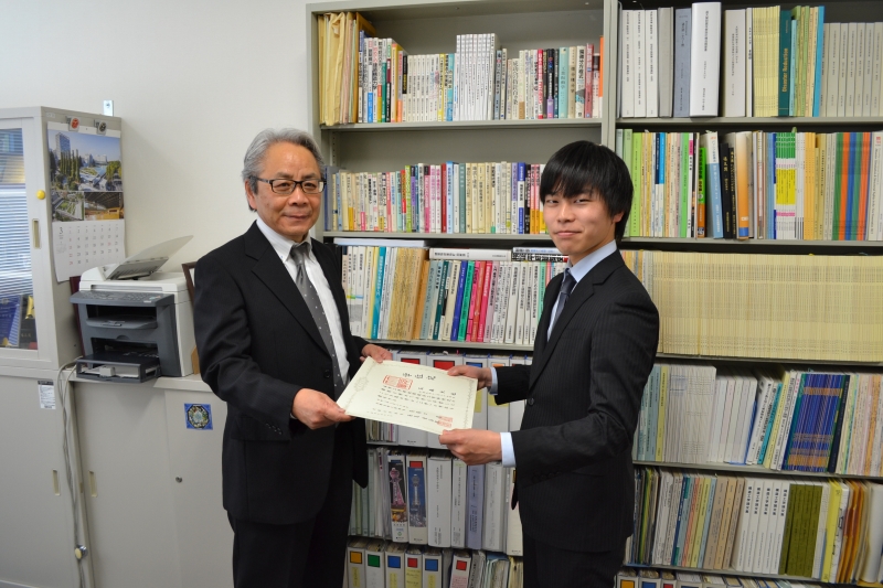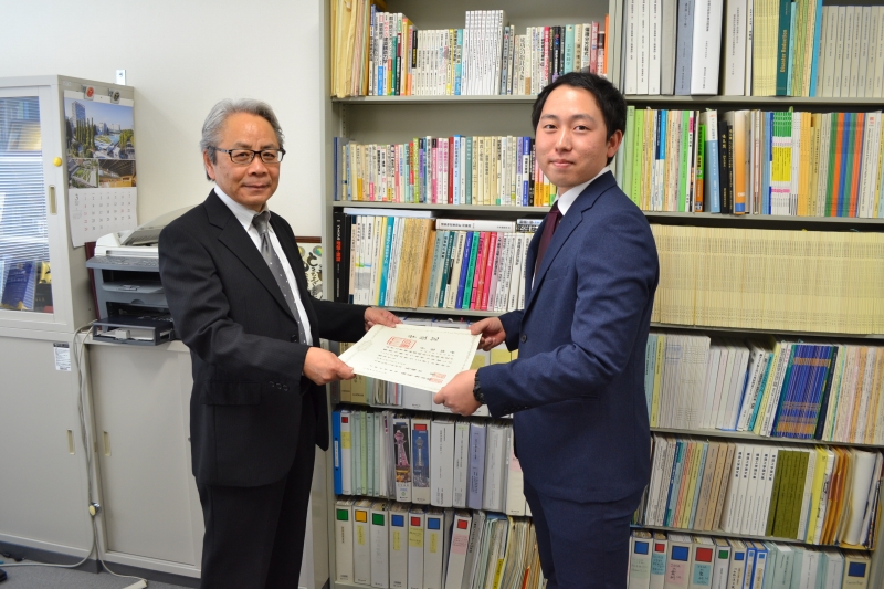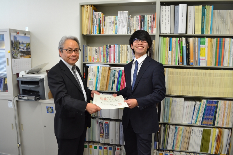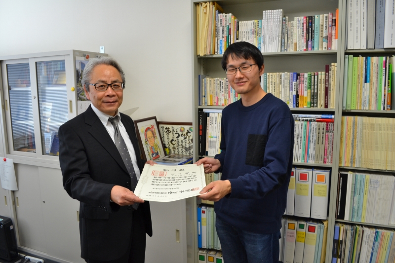 住友さんと寺垣くんには卒業論文奨励賞の盾が贈呈されました。