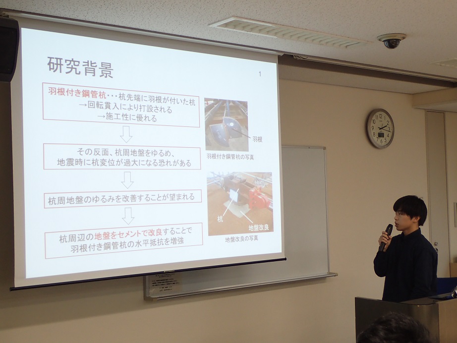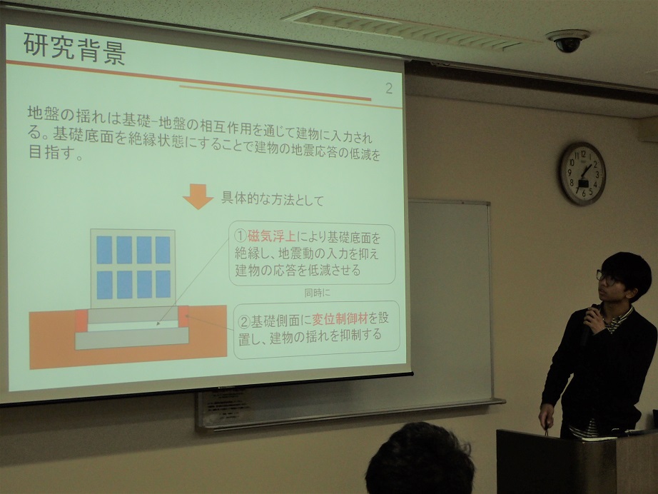 この方は、神奈川大学のM1の方で、免震に関して研究されています。