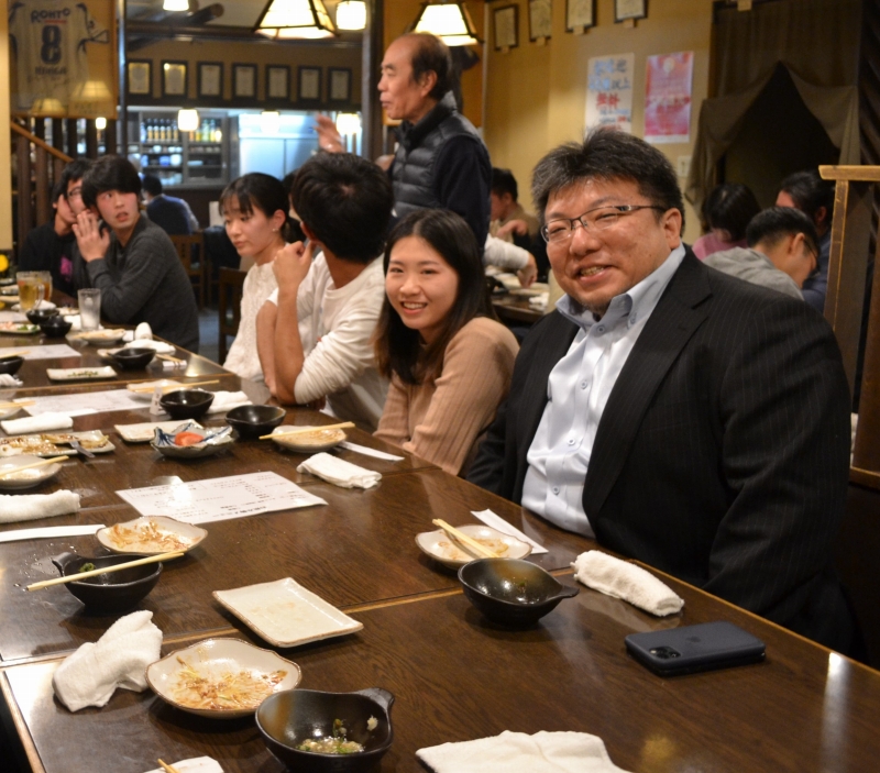 研究に関してだけでなく、飲み会などでも場を盛り上げてくれる、非常にいい先輩です。