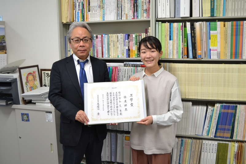 また、住友さんは大阪大学工学賞を受賞しました(後日撮影)。